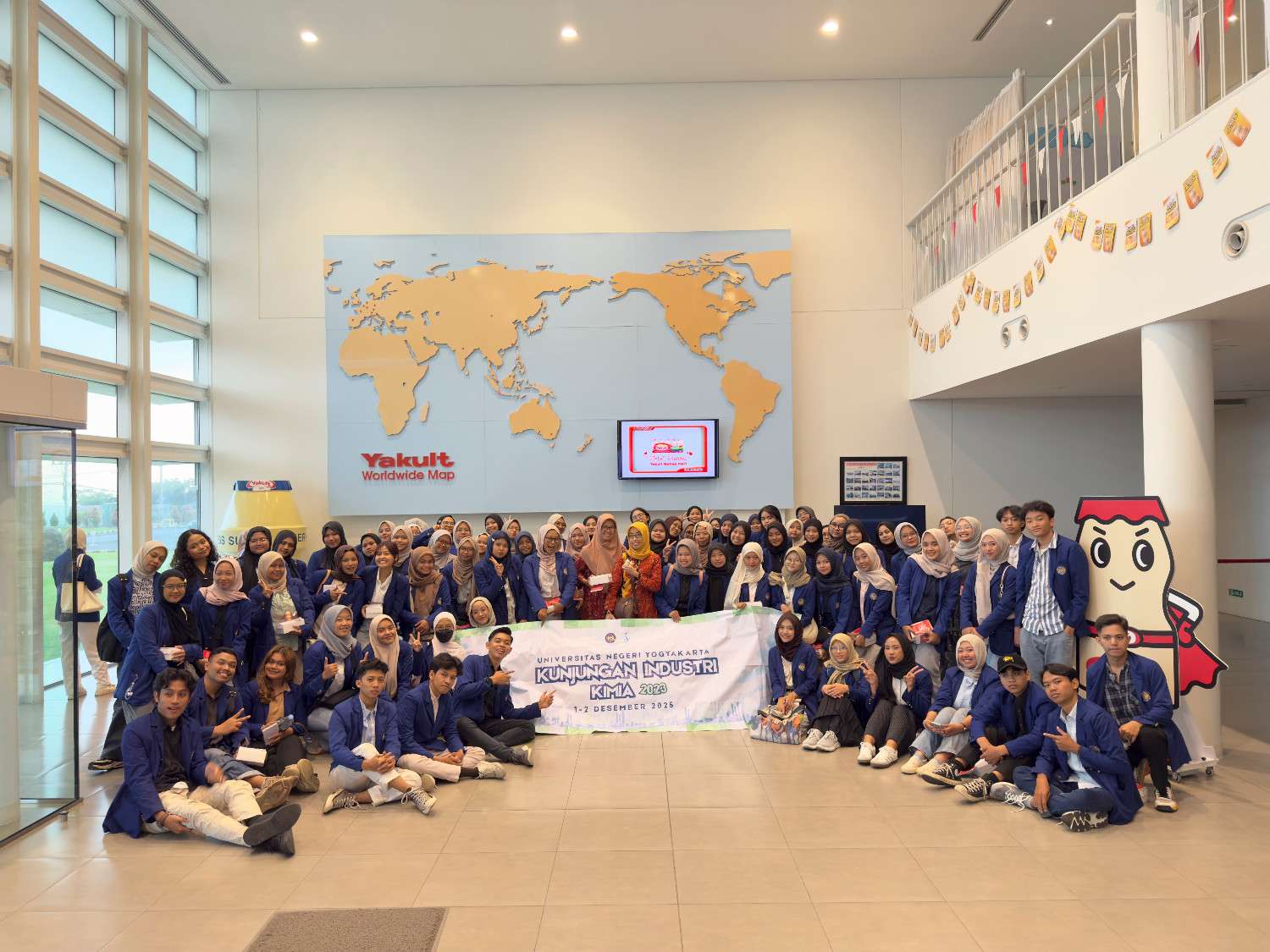 Mahasiswa Program Studi Kimia, Fakultas Matematika dan Ilmu Pengetahuan Alam (FMIPA), Universitas Negeri Yogyakarta (UNY) melaksanakan kunjungan industri pada 1–2 Desember 2025. Kegiatan ini membawa mahasiswa mengunjungi dua industri besar, yakni PT Vitapharm (Viva Cosmetic) dan PT Yakult Indonesia Persada yang berlokasi di Ngoro, Mojokerto.